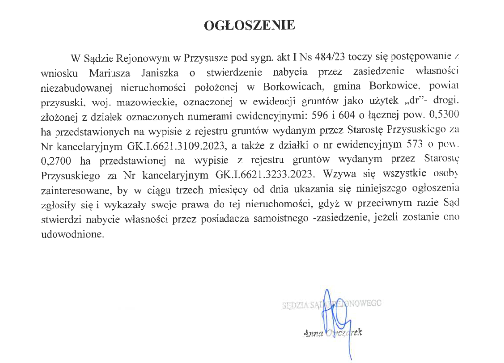 | ZASIEDZENIE DZIAŁKI NR 596 I 604 ORAZ 573 POŁOŻONEJ W BORKOWICACH |