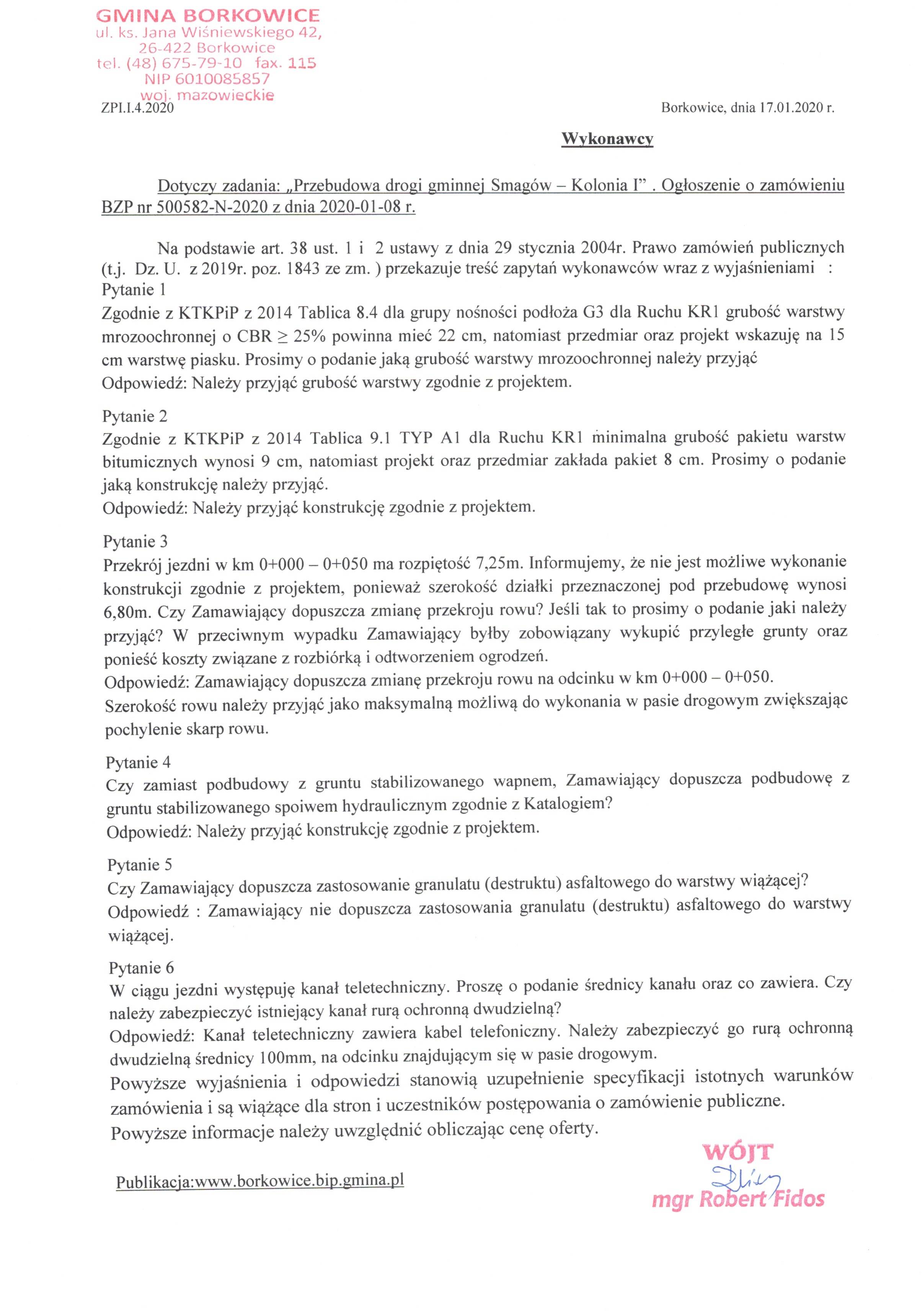 | wyjaśnienia do przetargu na przebudowę drogi gminnej Smagów-Kolonia I |